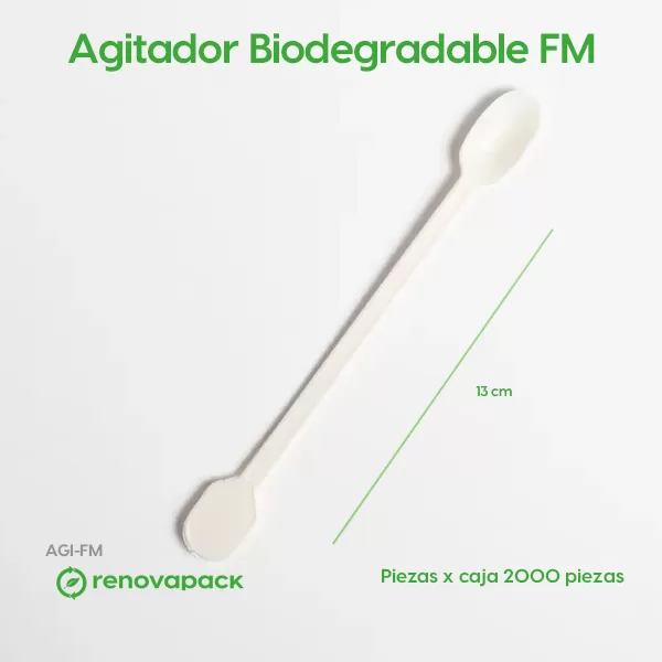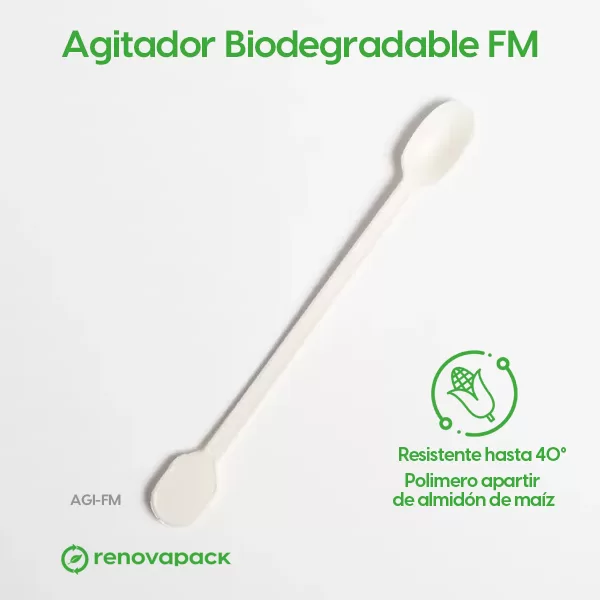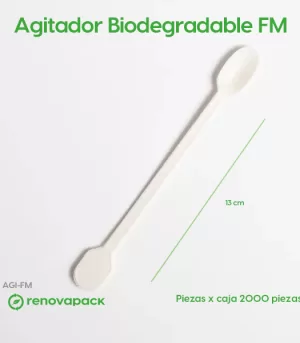 Agitador Biodegradable de 13.3 centímetros de largo fabricado a base de fécula de maíz. Resiste altas temperaturas.