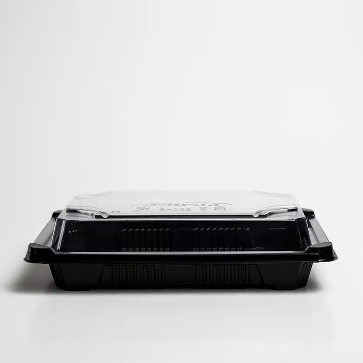 Bandeja Biodegradable para Sushi 7x5x2 con tapa. Hecho a base de polímero PLA. Material biodegradable y compostable. Especial para alimentos y bebidas frías. Soporta hasta 40ºC. Su degradación se da entre los 90 y los 180 días en composta industrial.