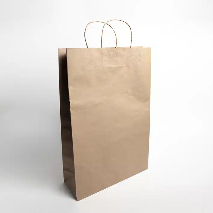 Bolsa Biodegradable Kraft con Asa 17 (33 cm de ancho, 12 cm de fuelle, 50 cm de altura) Bolsa ecológica, no cntiene cera ni revestimiento de plástico, fabricado a base de papel.