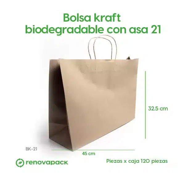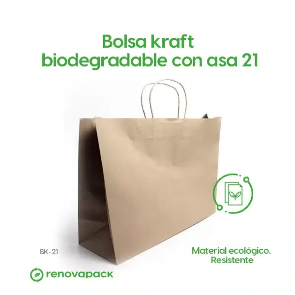Bolsa Biodegradable Kraft con Asa 21