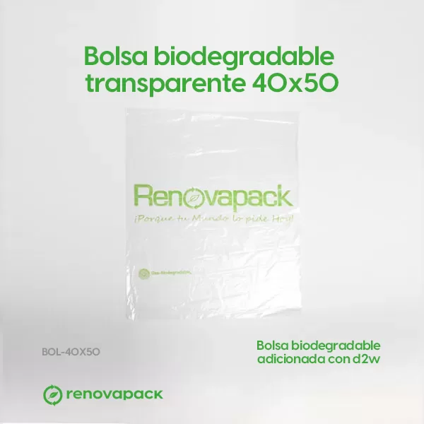 Bolsa oxo-biodegradable transparente 40×50. Fabricado con aditamento d2w, con el fin de acelerar su proceso de degradación. Alta resistencia al peso. Resiste humedad y calor. Calibre 180.