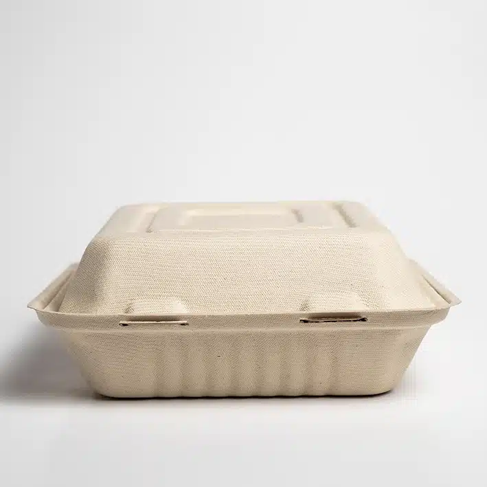 Contenedor Biodegradable 8x8x3 c/3div. Hecho a base de bagazo de trigo. Material biodegradable y compostable. Soporta microondas y congelador. No escurre ni absorbe. Su degradación se da entre los 90 y los 180 días en composta industrial.
