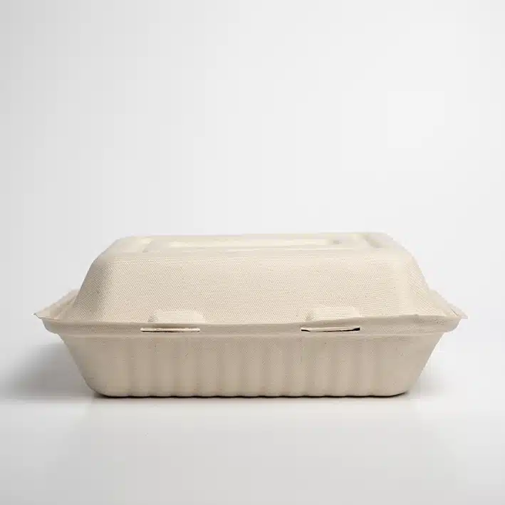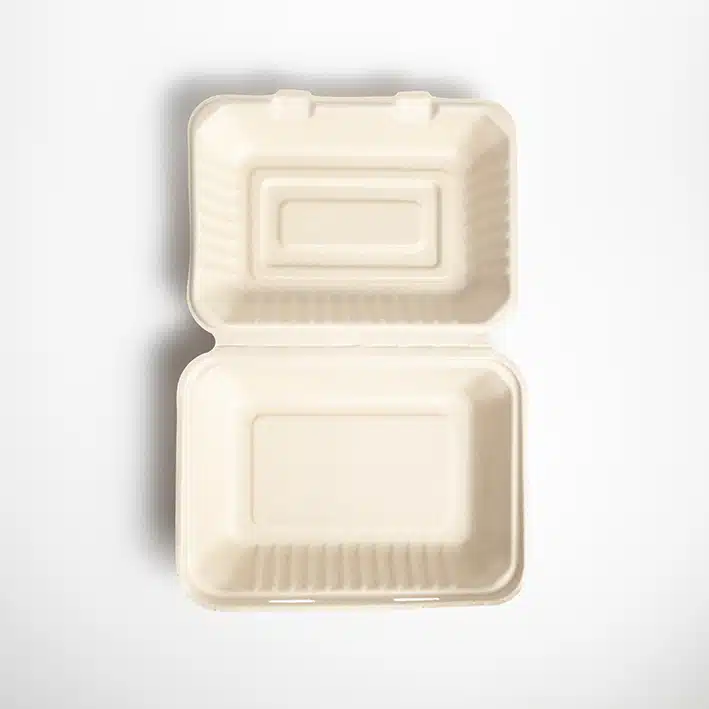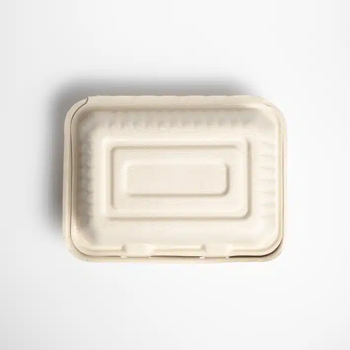Contenedor Biodegradable 9x6x3. Hecho a base de bagazo de trigo. Material biodegradable y compostable. Soporta microondas y congelador. No escurre ni absorbe. Su degradación se da entre los 90 y los 180 días en composta industrial.