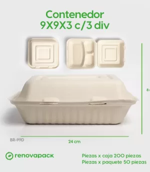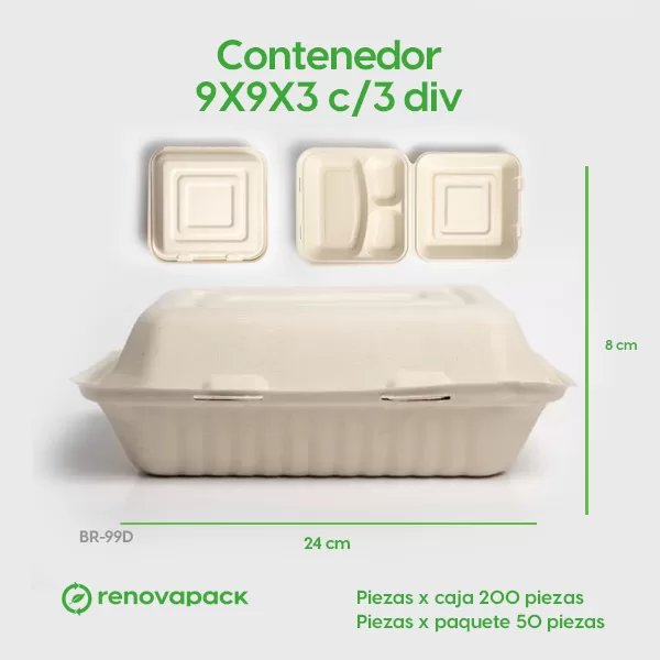 Contenedor Biodegradable 9x9x3 c/3div