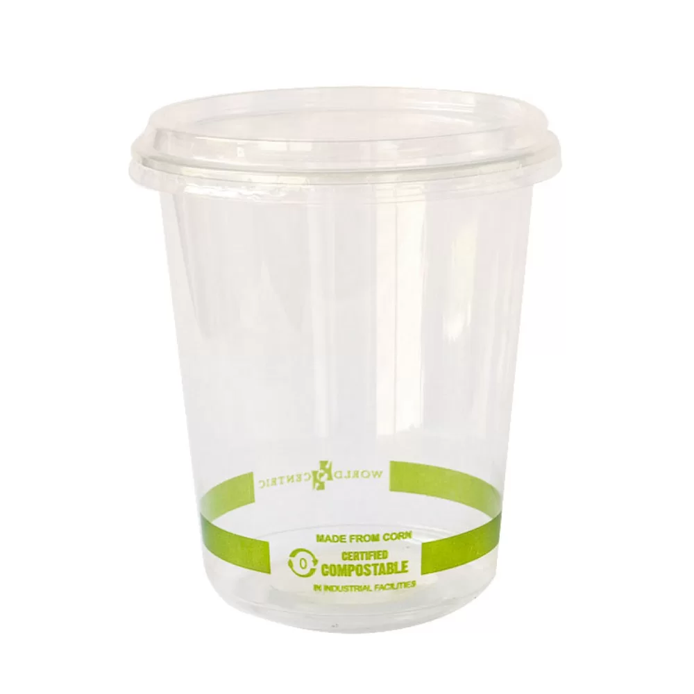 Deli Redondo 32oz Biodegradable (11.5cm diámetro, 14cm altura y 946.35ml capacidad). Hecho a base de polímero PLA. Material biodegradable y compostable. Especial para alimentos y bebidas frías. Soporta hasta 40ºC. Su degradación se da entre los 90 y los 180 días en composta industrial.