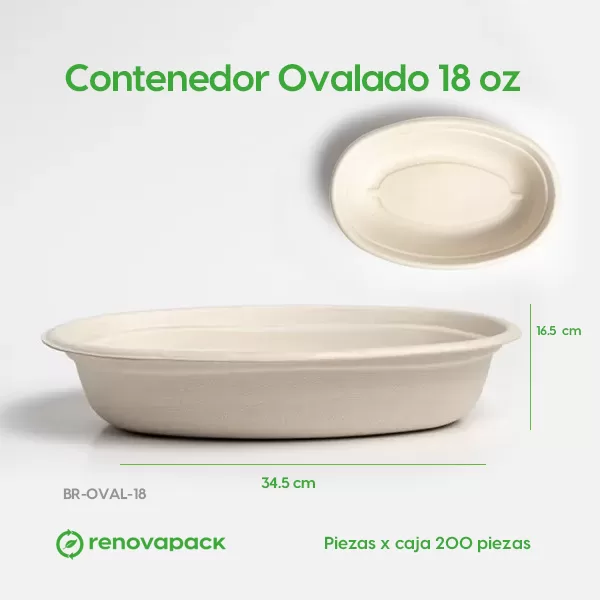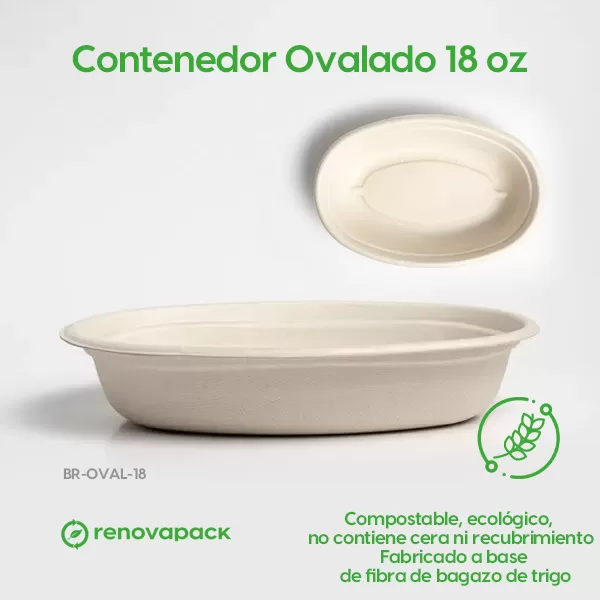 Contenedor Ovalado 18 oz Biodegradable – Renovapack