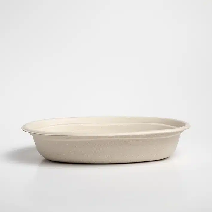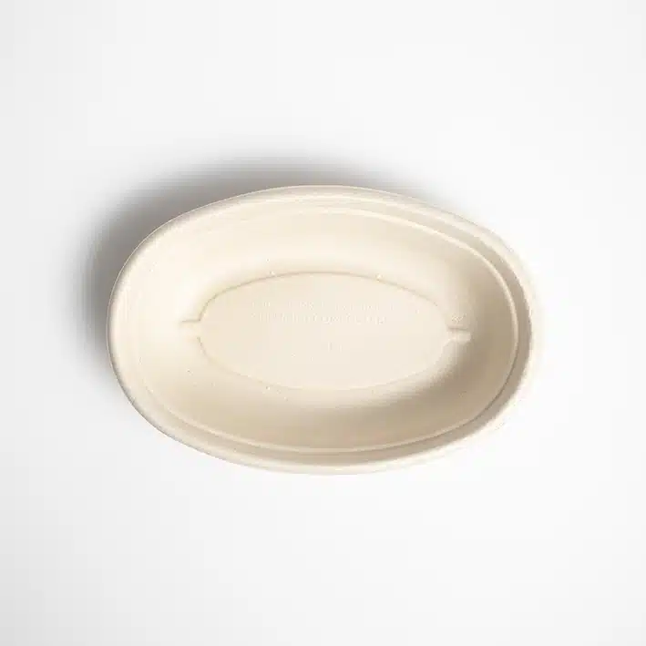 Contenedor ovalado 18oz biodegradable hecho a base de Bagazo de Trigo. Soporta líquidos y microondas.