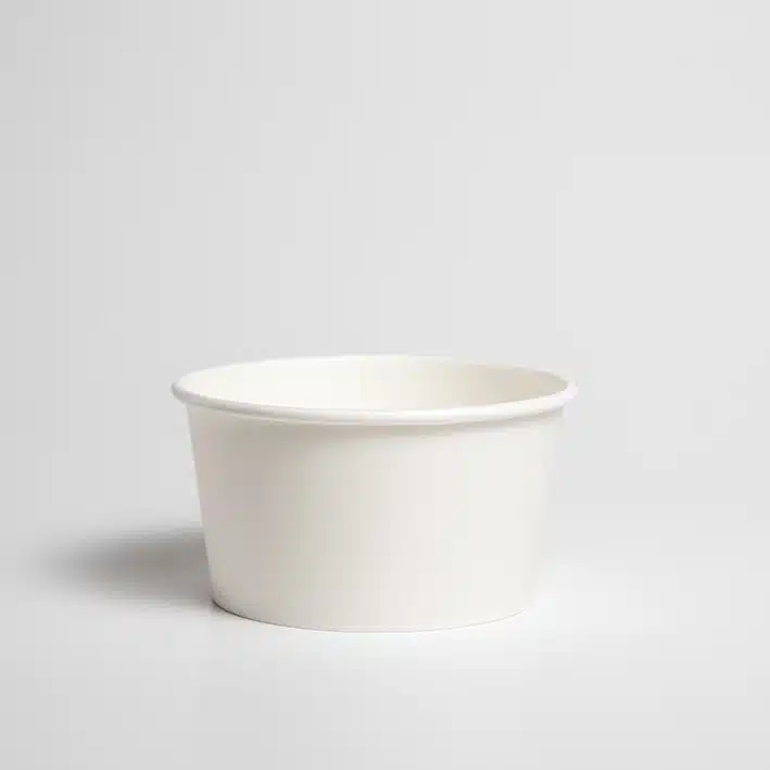 Contenedor Térmico 12oz Biodegradable. (11.5cm de diámetro, 6.5cm de altura) Hecho de papel y laminado de PLA. Materiales biodegradables y compostables. Especial para alimentos y bebidas calientes. Material térmico. Su degradación se da entre los 90 y los 180 días en composta industrial.