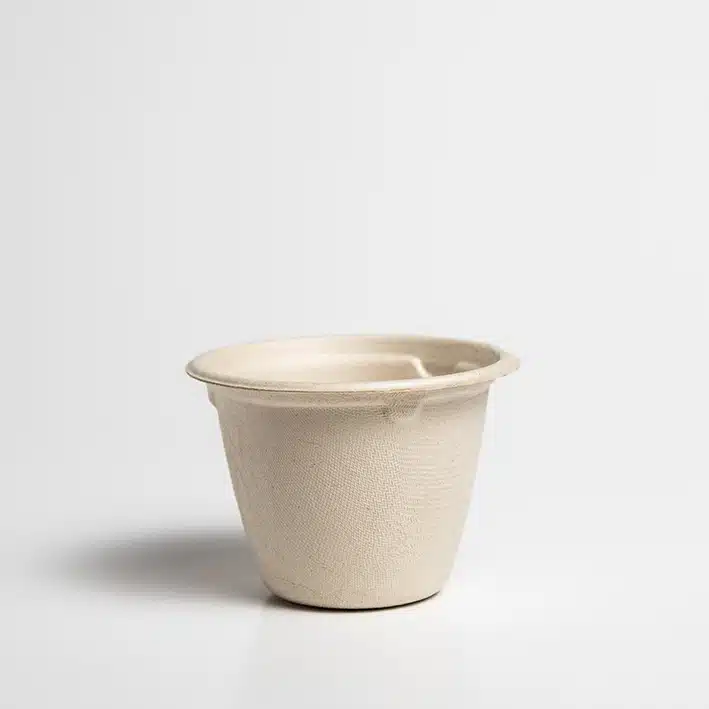 Copa soufflé 4oz Biodegradable. Hecho a base de bagazo de trigo. Material biodegradable y compostable. Soporta microondas y congelador. No escurre ni absorbe. Su degradación se da entre los 90 y los 180 días en composta industrial.