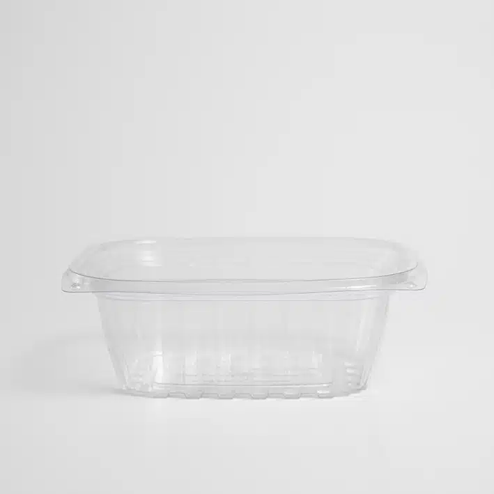 Deli Rectangular 12oz Biodegradable (15cm largo, 12cm ancho y 5cm altura). Hecho a base de polímero PLA. Material biodegradable y compostable. Especial para alimentos y bebidas frías. Soporta hasta 40ºC. Su degradación se da entre los 90 y los 180 días en composta industrial.