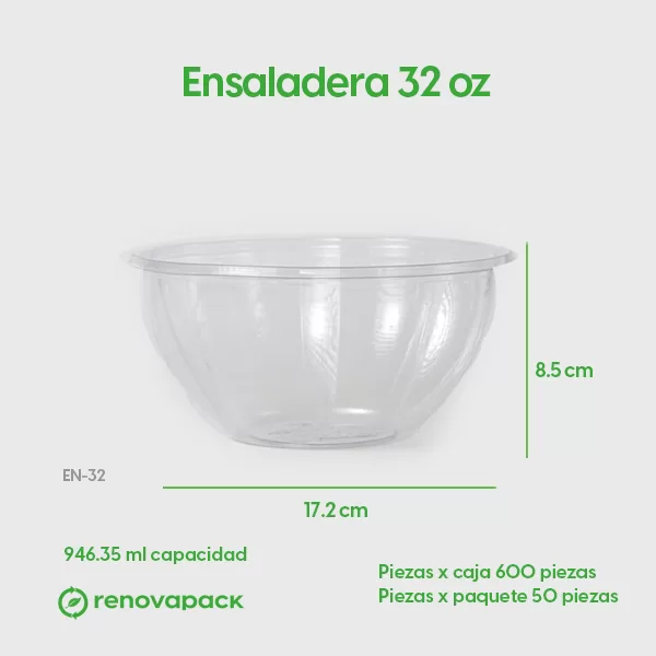 Ensaladera transparente biodegradable de 32 oz