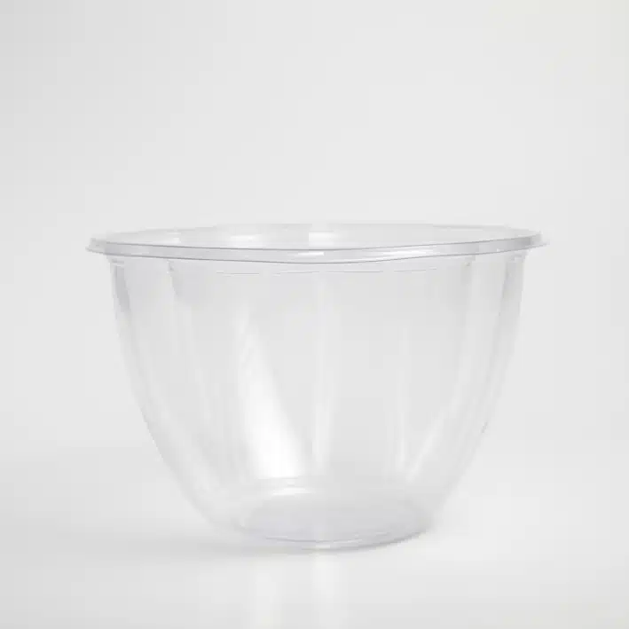 Ensaladera Biodegradable de 48 oz, (17.2cm diámetro, 18.5cm altura y 1,419.5ml capacidad) hecho de PLA, polímero constituido por moléculas de ácido láctico, es un termoplástico que se obtiene a partir de almidón de maíz.
