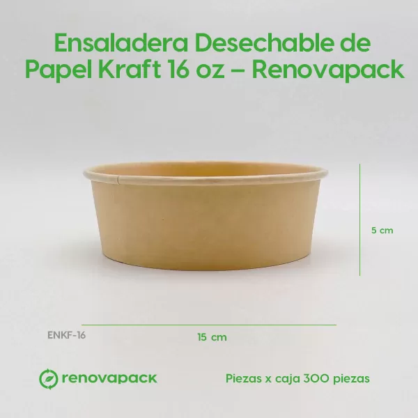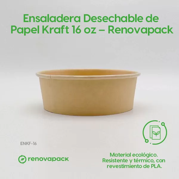 Ensaladera Desechable de Papel Kraft 16 oz – Renovapack