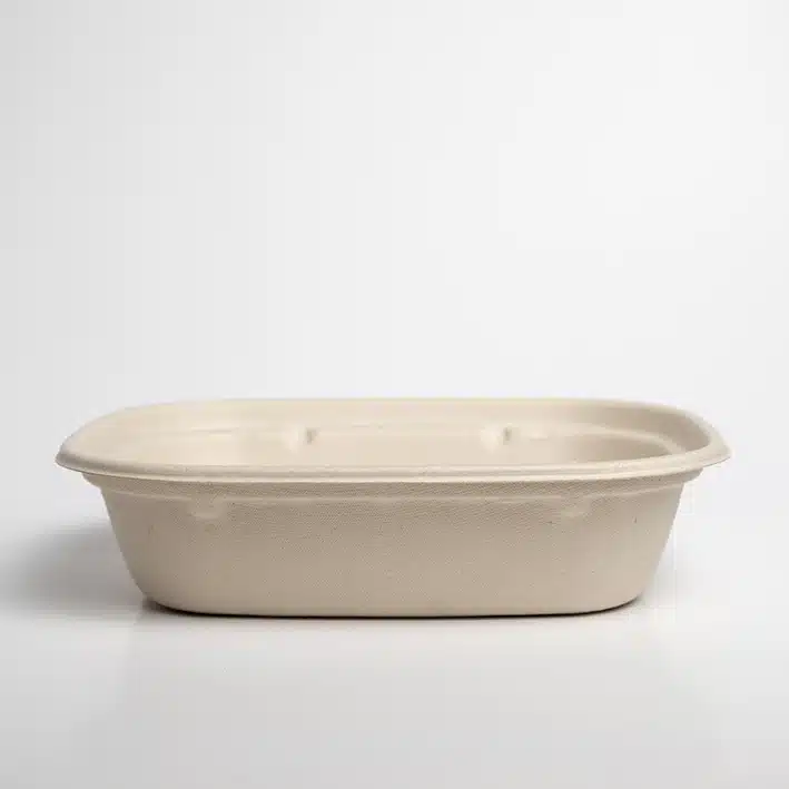 Contenedor Biodegradable Lunch-box 9x7x2. Hecho a base de bagazo de trigo. Material biodegradable y compostable. Soporta microondas y congelador. No escurre ni absorbe. Su degradación se da entre los 90 y los 180 días en composta industrial.