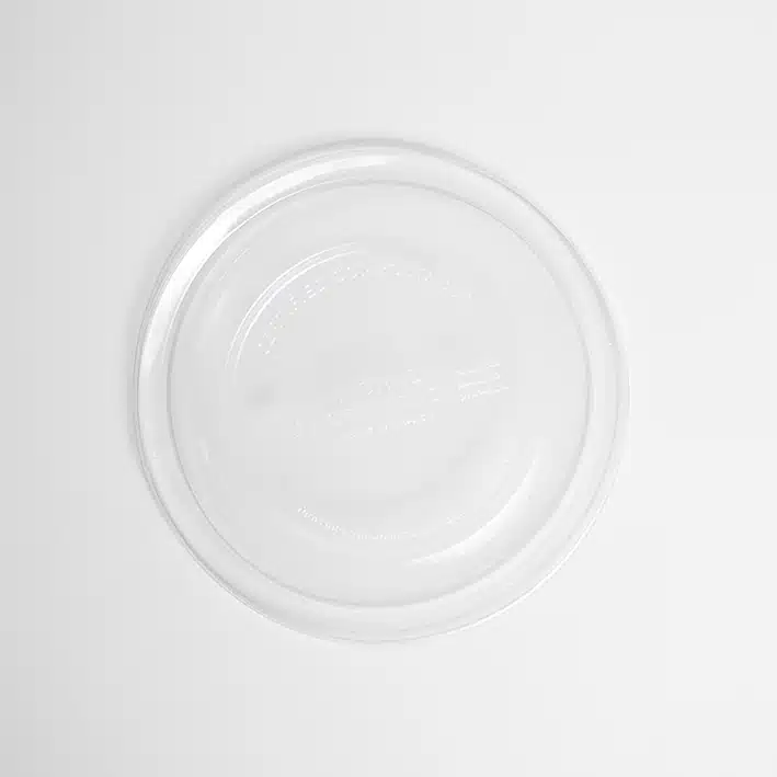 Tapa Transparente Tazón 16/24/32oz. Hecho a base de polímero PLA. Material biodegradable y compostable. Especial para alimentos y bebidas frías. Soporta hasta 40ºC. Su degradación se da entre los 90 y los 180 días en composta industrial.