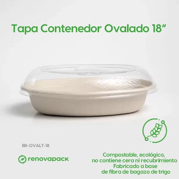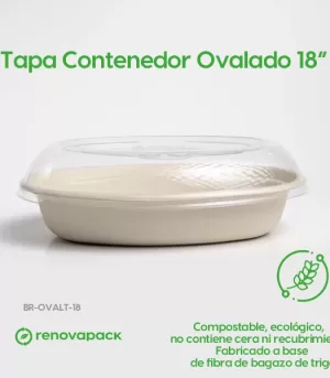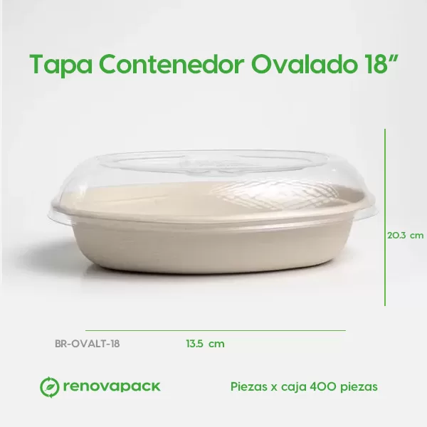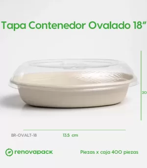 Tapa Contenedor Ovalado 18 oz Biodegradable