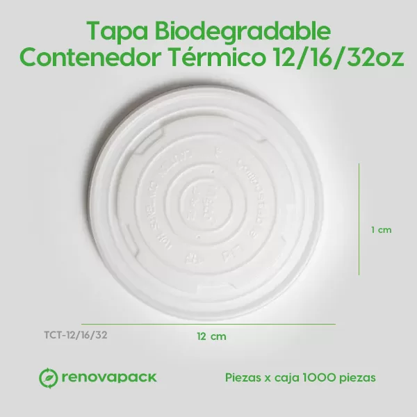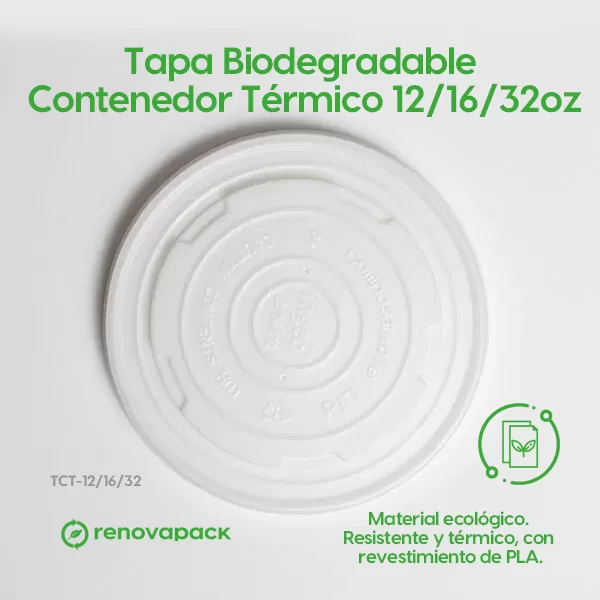 Tapa Biodegradable Contenedor Térmico 12/16/32oz