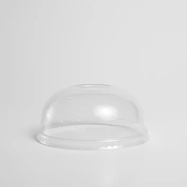 Tapa Domo Biodegradable Contenedor Térmico de 12, 16 y 32 oz. Hecho a base de polímero PLA. Material biodegradable y compostable. Especial para alimentos y bebidas frías. Soporta hasta 40ºC. Su degradación se da entre los 90 y los 180 días en composta industrial.