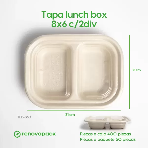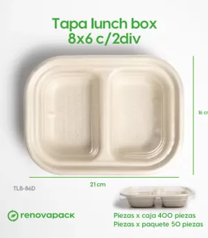 Tapa Lunch-box 8×6 c/2div Biodegradable