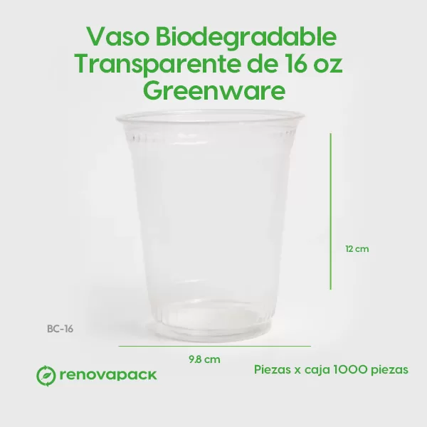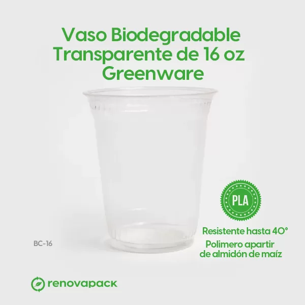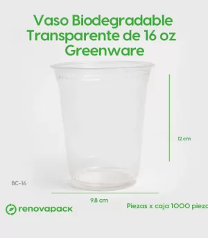 Vaso Biodegradable Transparente de 16 oz – Greenware